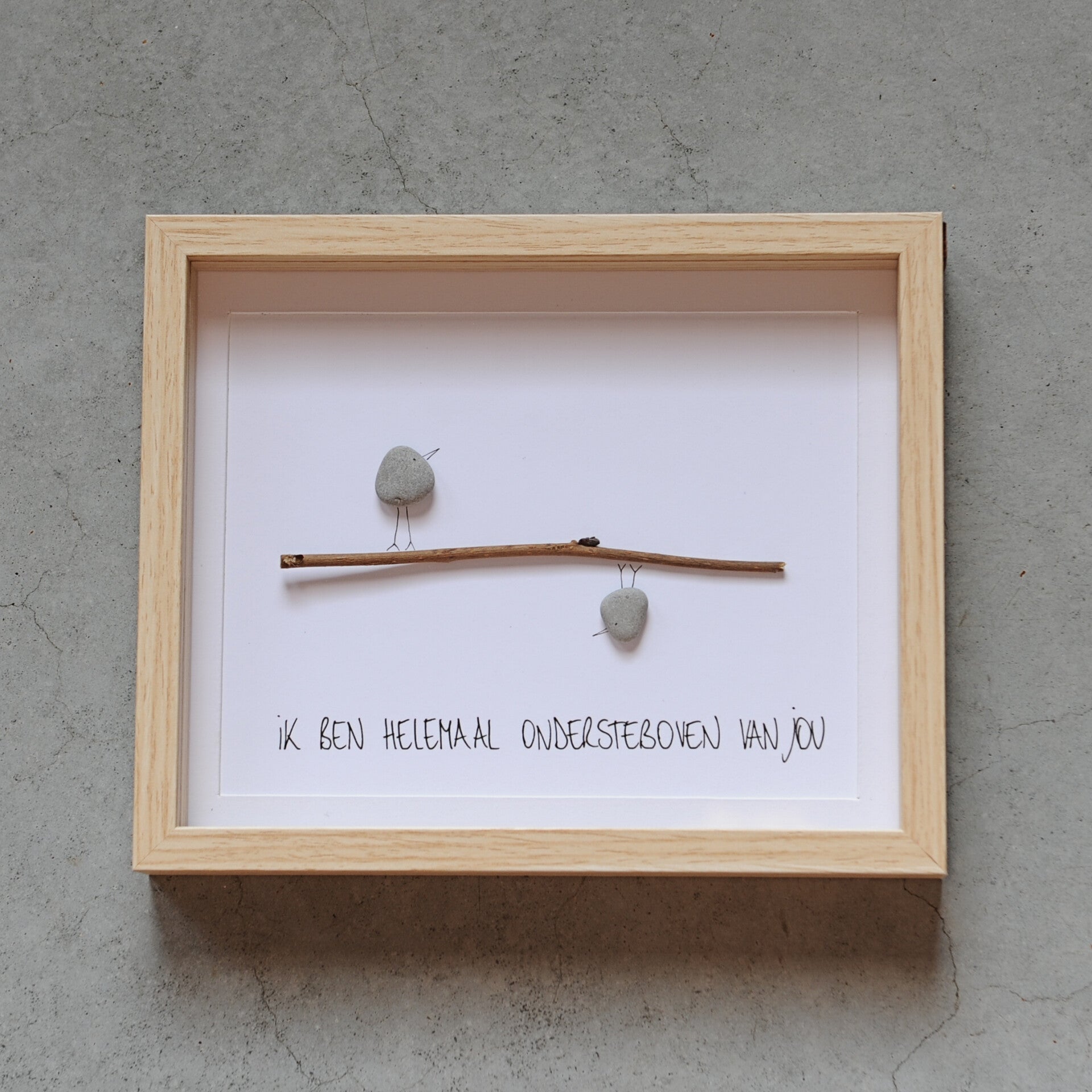 Strakke kader met de quote 'Ik ben helemaal ondersteboven van jou'.